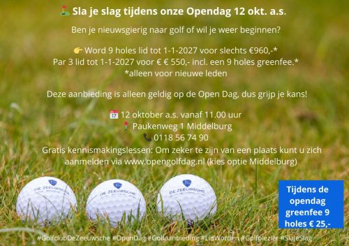 Meldt je gratis aan voor de Open Dag via de volgende link: https://golfstart.golf.nl (kies optie Middelburg)